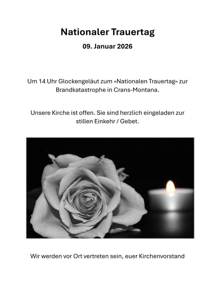 Am 9. Januar 2026, dem nationalen Trauertag nach der Brandkatastrophe in Crans-Montana, werden um 14 Uhr schweizweit die Kirchenglocken läuten.